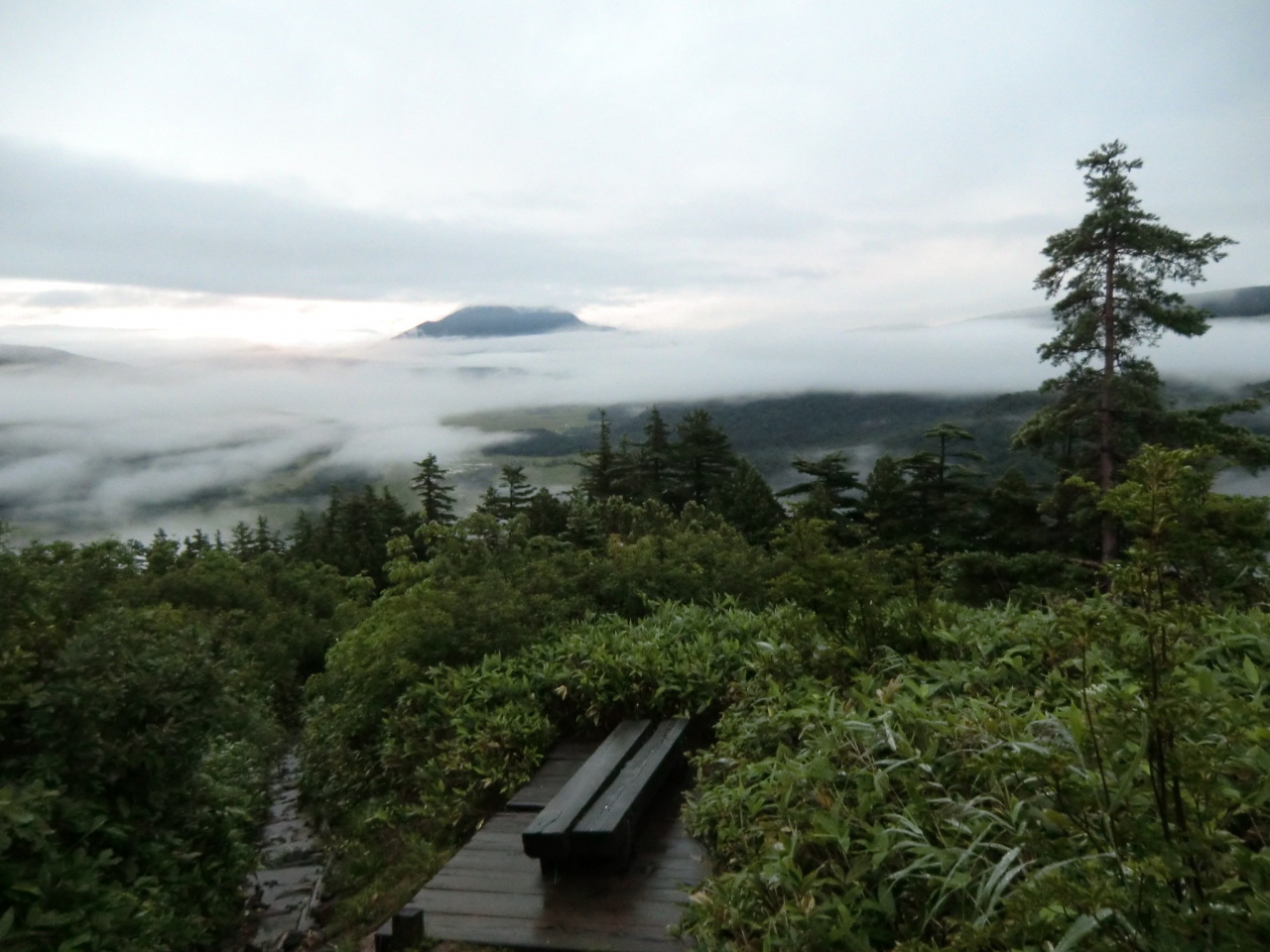 私が行った日は、あいにくガスが巻いてしまって、山頂からの眺めはありませんでしたが、所々で雲がきれて少しではありましたが、景色を見る事ができました。