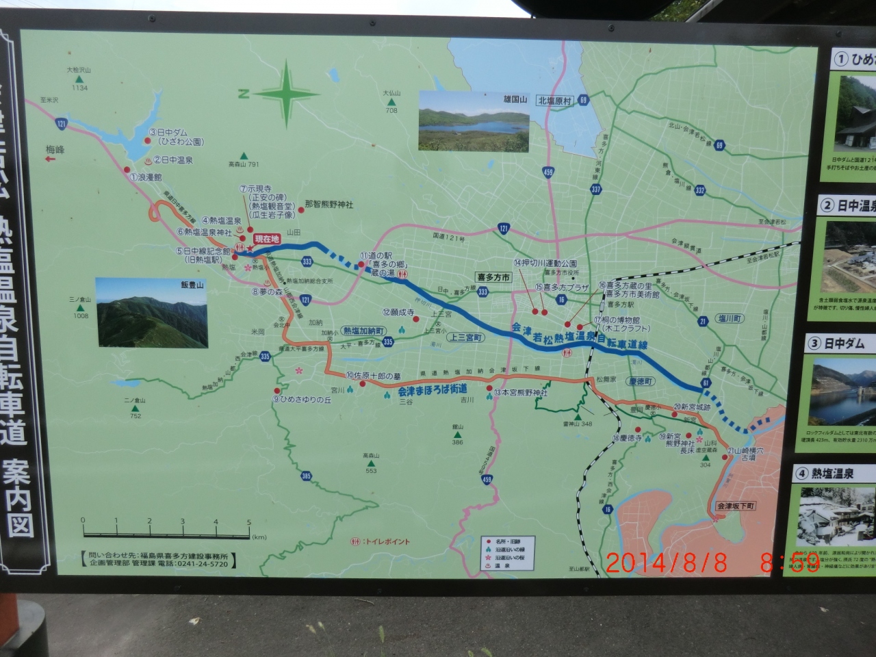 喜多方から熱塩温泉まで、自転車道が整備されています。