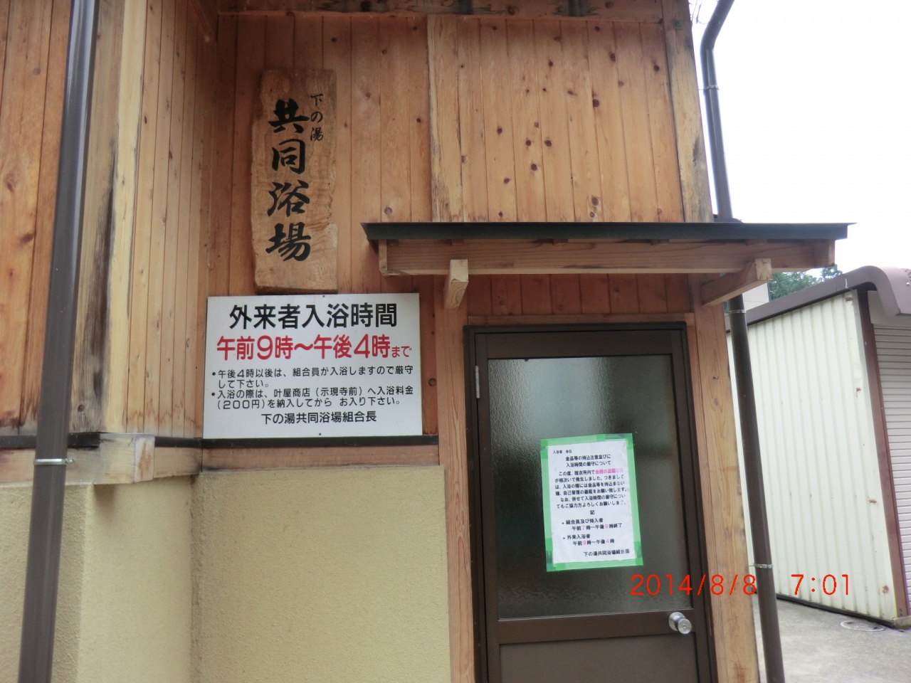 共同浴場(下の湯)は9:00~16:00 右隣の叶屋商店で200円を払います。