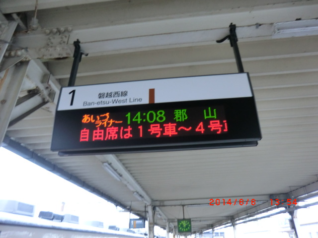 会津若松発車時刻‥2号9:10・4号14:08・6号17:14