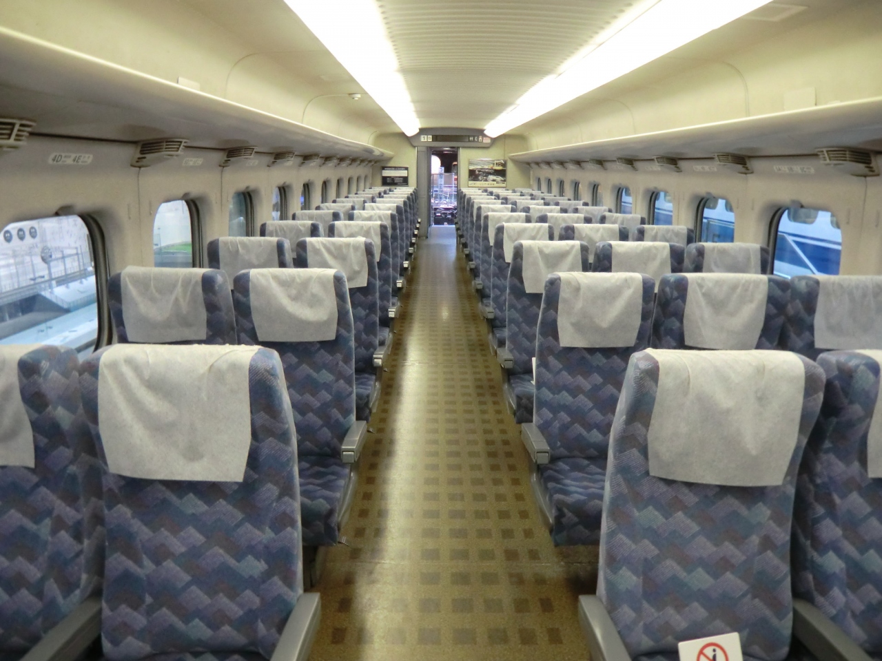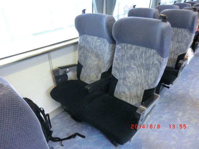 1人掛けと2人掛けのゆったりとした座席のバスです。