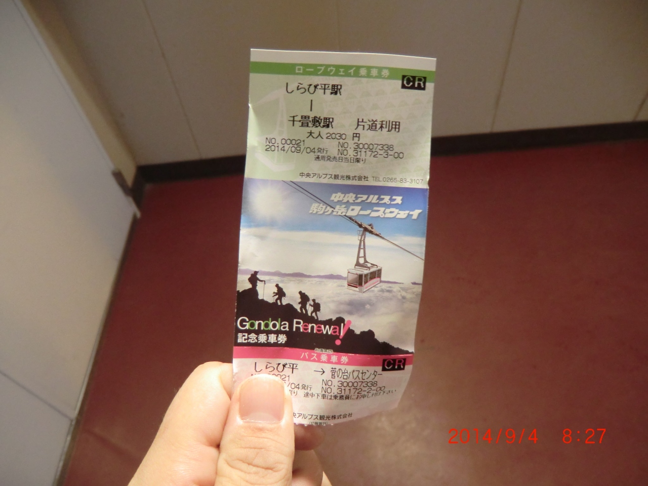 平成26年9月4日の8:30のしらび平行きに乗りました。