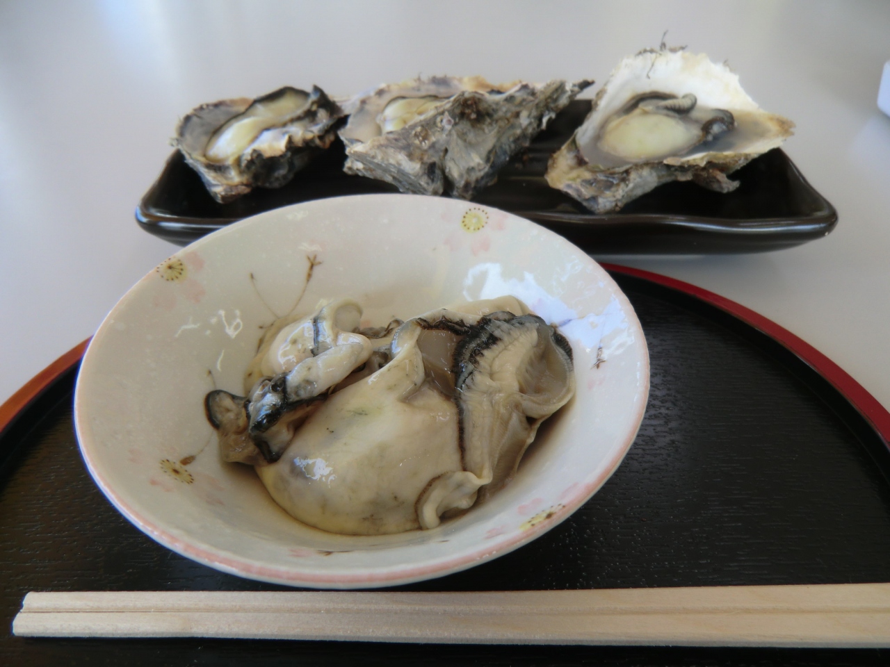 - 食堂で、生牡蠣やオードブルのサービスがありました。