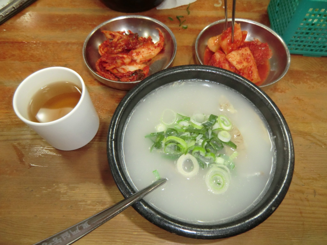 牛骨や内臓を長時間煮込んだソルロンタンは色が真っ白‥漢字で雪濃湯と書きます。