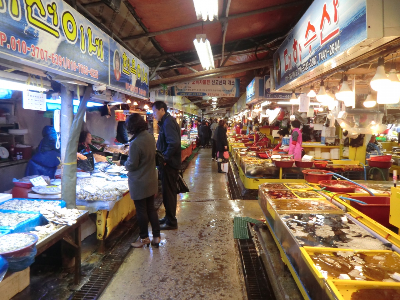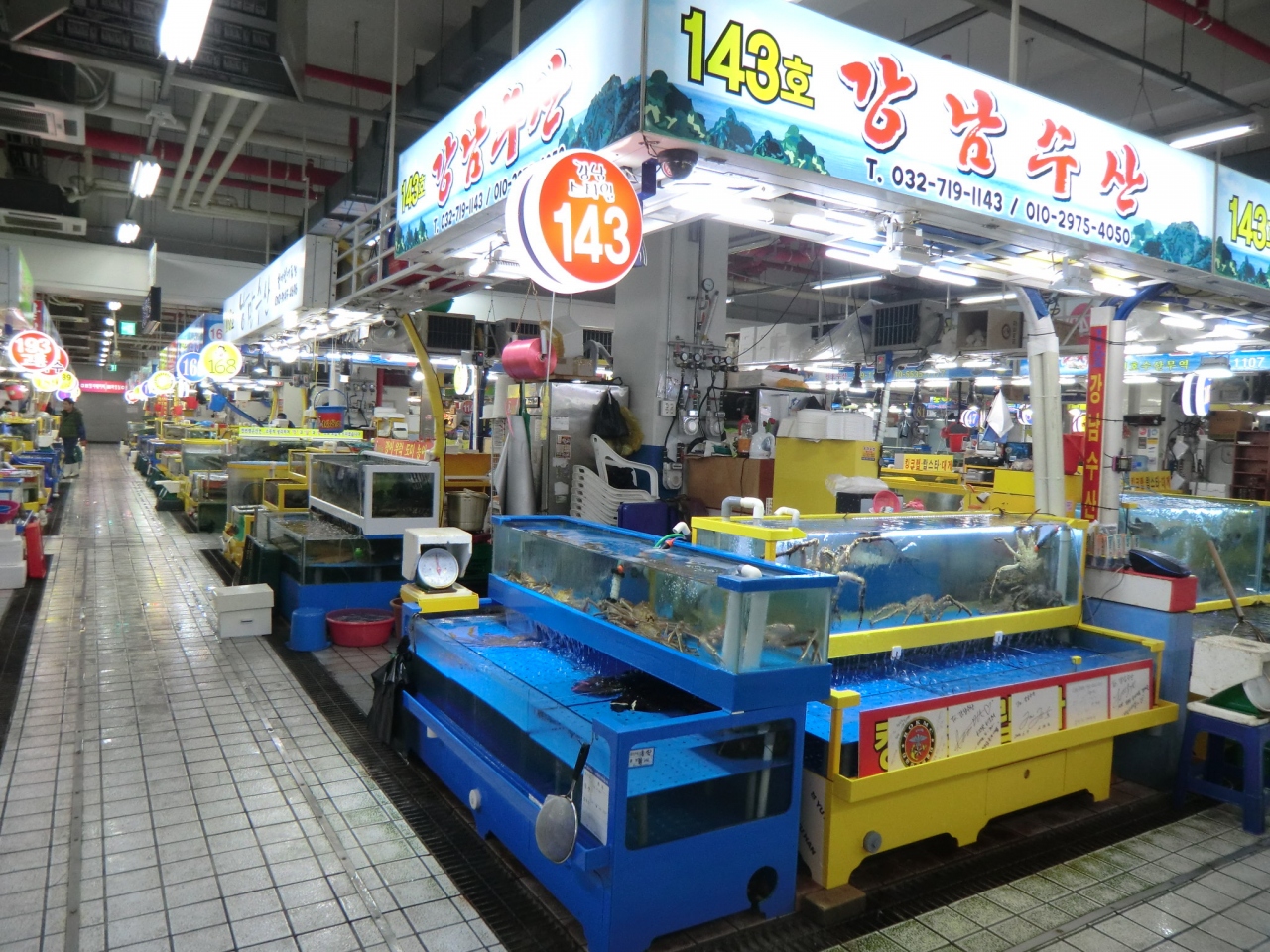 蘇莱浦口市場は、昔からある在来市場(駅から徒歩10分)と、新しくオープンした総合市場(駅から徒歩5分)‥にプラスして市場周辺にも海産物の食堂が多数あります。