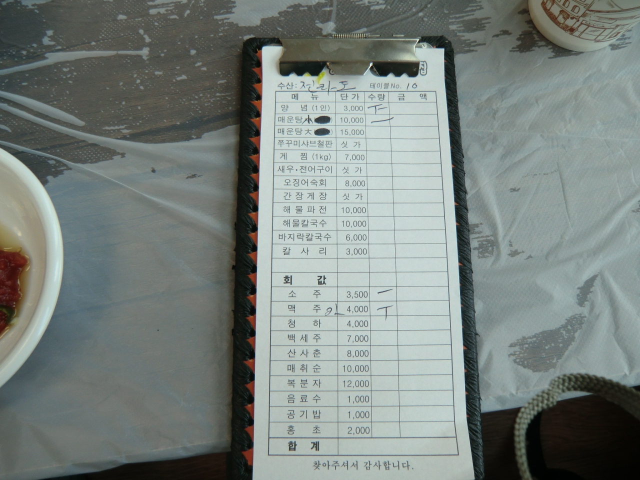 薬味セット3人+メウンタン+ブリ+タコで64000ウォン。
