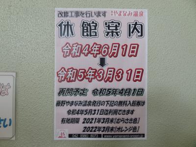〈藤野やまなみ温泉〉改修工事のため、令和5年3月31日まで長期休館中。