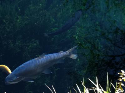 最初この池を覗き込んだときは、本当に驚きました。池に太陽の光が差し込み、魚達が鮮やかにブルーやグリン、ゴールドに光り輝き、かなり深い池の中まで立体的に見えるんです。まるで3Dの立体映画を見ているかのようでした。例えるなら、ラセン階段5階程の上から一番下が綺麗に見通せるような感覚で、今でも残像が残っています。
