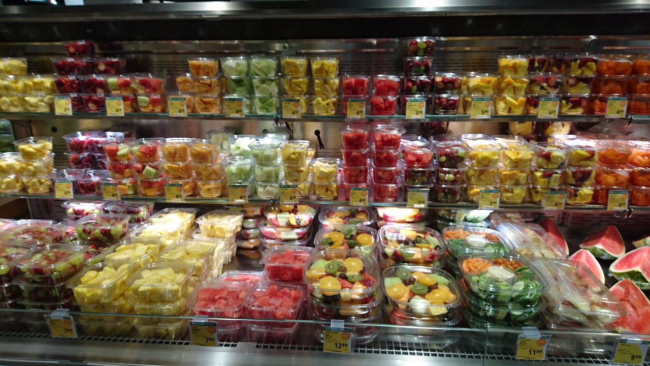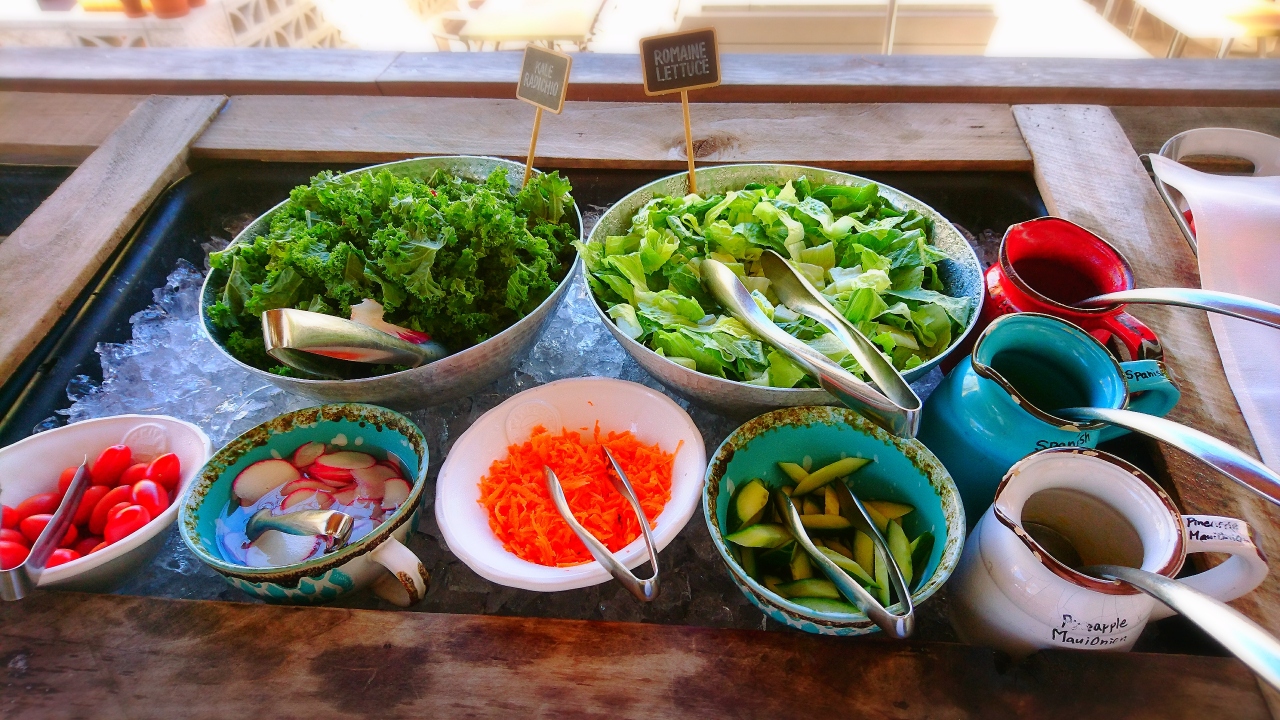 ローカル産の新鮮な野菜やフルーツ、デリが盛りだくさん。