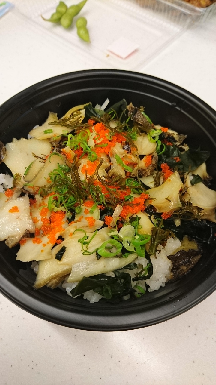 鮑の漬がトビコとワカメと一緒にこれでもかとトッピングされてる。