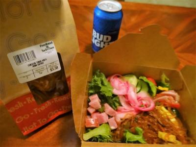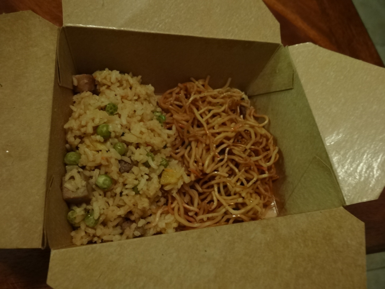 旦那ちゃんが食べたいと言って詰めた焼きそばと炒飯は6.47ドル。