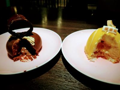 チョコケーキとパッションフルーツのケーキが出て来たんだけど、このトロピカルドームと言うケーキはこれ単品で12ドルするシロモノ。