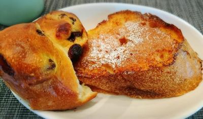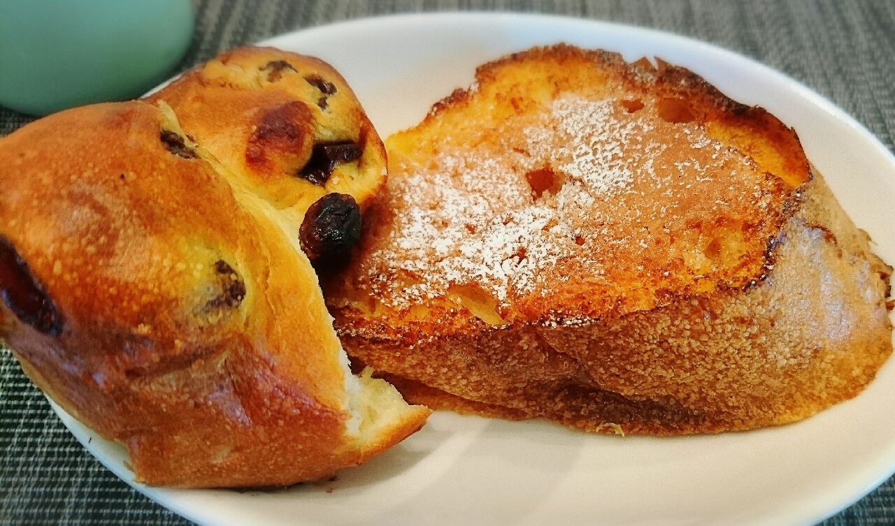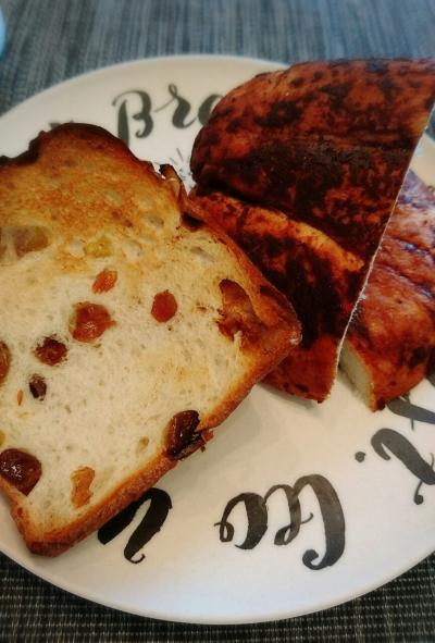 左のパンはレーズンパンの残りね。