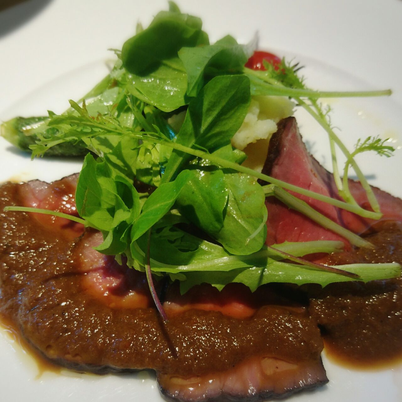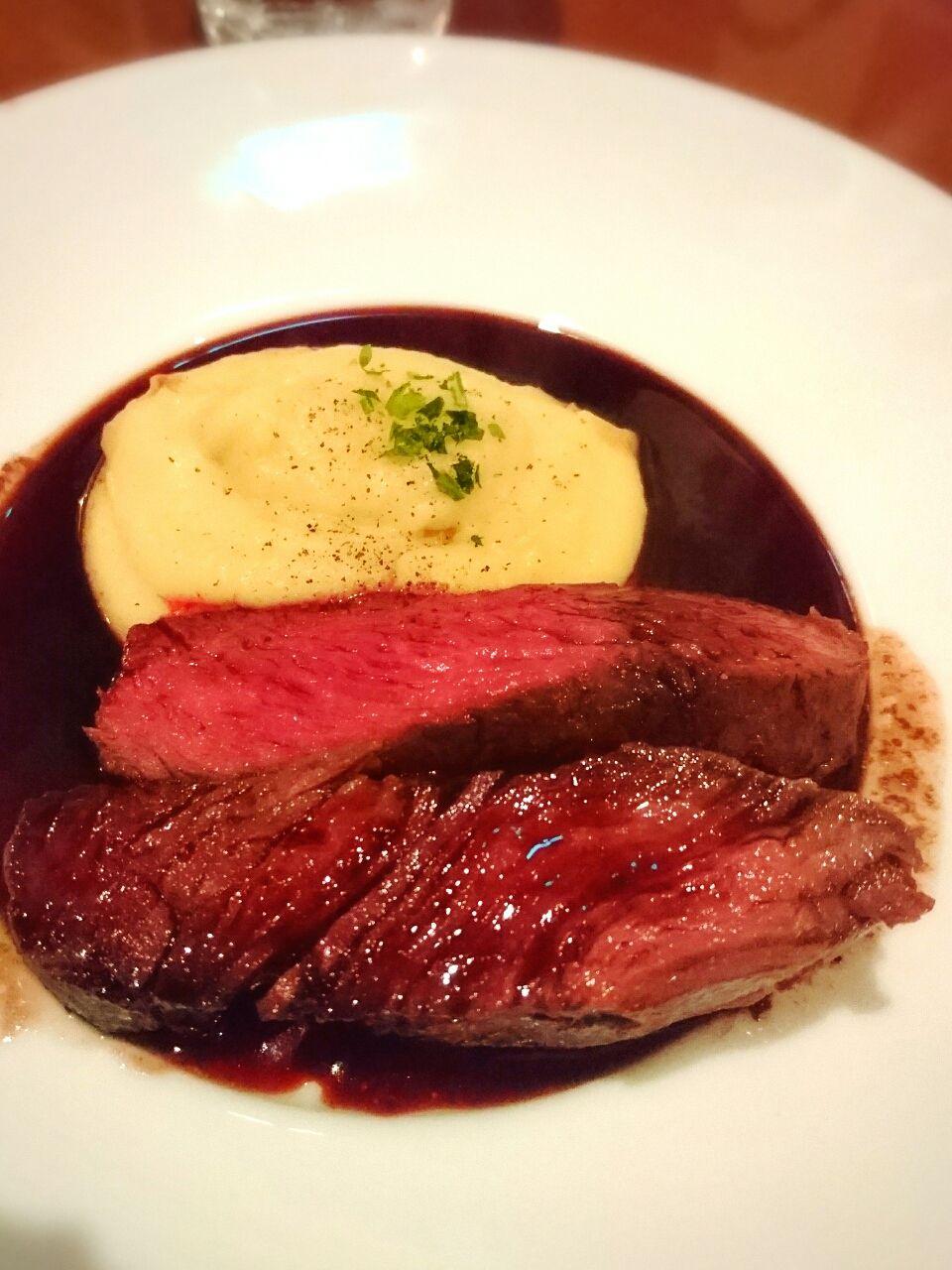 赤ワインベースのソースとマッシュポテトの付け合わせ。