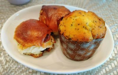 紅茶のマフィンと、ラムレーズンのパン。