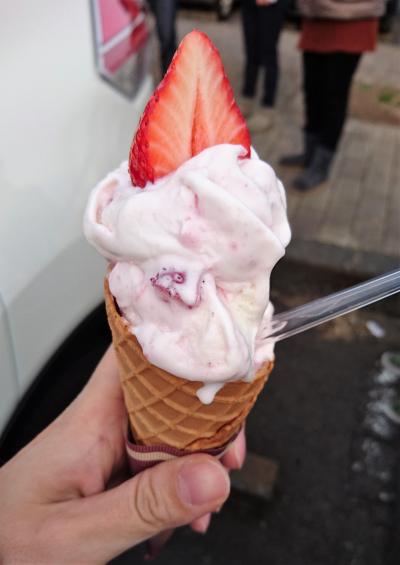 やたら行列してんなーと思ったら、オーダーしてからとちひめをミルクジェラートにぶっこんで作ると言うかなり新鮮なジェラートでございました。