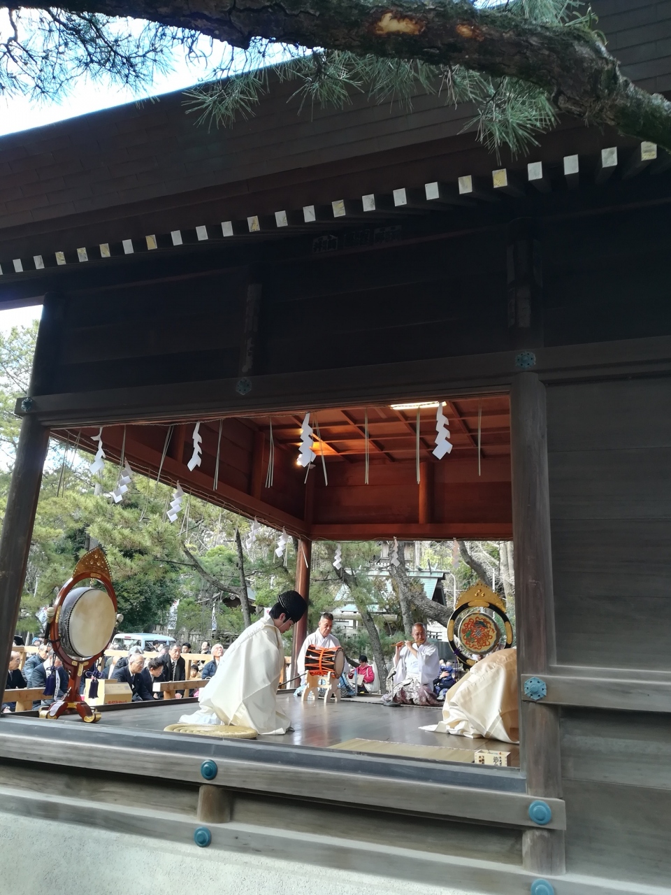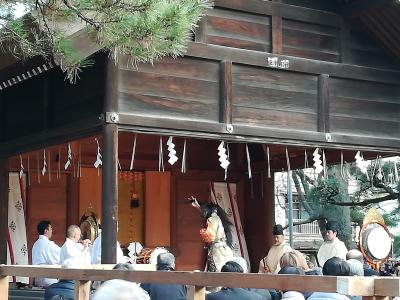 節分祭は午前と午後の部があり、私たちは午後4時からのお神楽と豆まきを見ました。