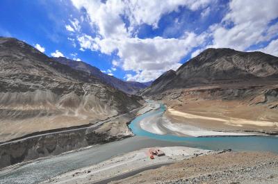 昨日曇りでいまいちだったザンスカール川、インダス川の合流部。冬ザンスカ...