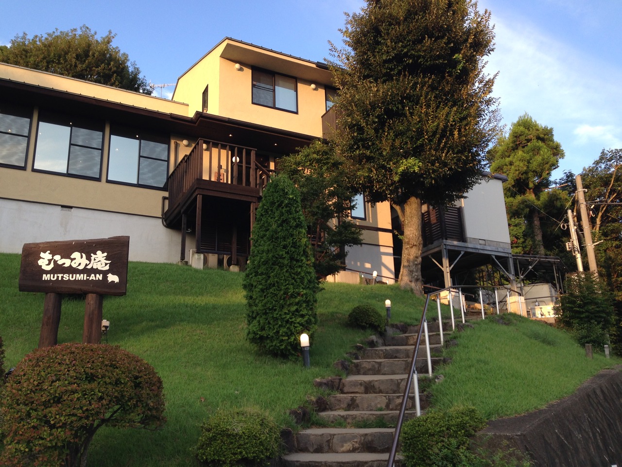 人里離れた野趣あふれる道を進んで宿に到着しますが、ちょうど不安になりそうなところで「むつみ庵→」と看板があり、こんなところにも配慮があるんだと、感動しました。
