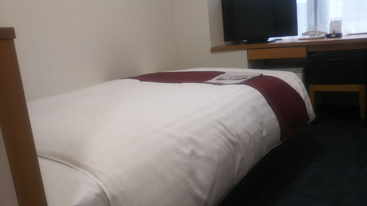 お部屋はシングルなので狭いけど、ベットはセミダブル位ありました。