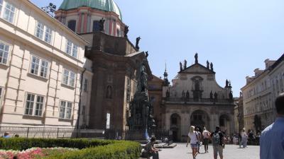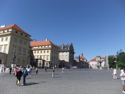 広場には、大司教宮殿、国立美術館になっているシュテンベルグ宮殿、向かいには、シュヴァルツェンベルグ宮殿があり、高台からの眺めはとても良かったです。 プラハの街並みが、一望です。