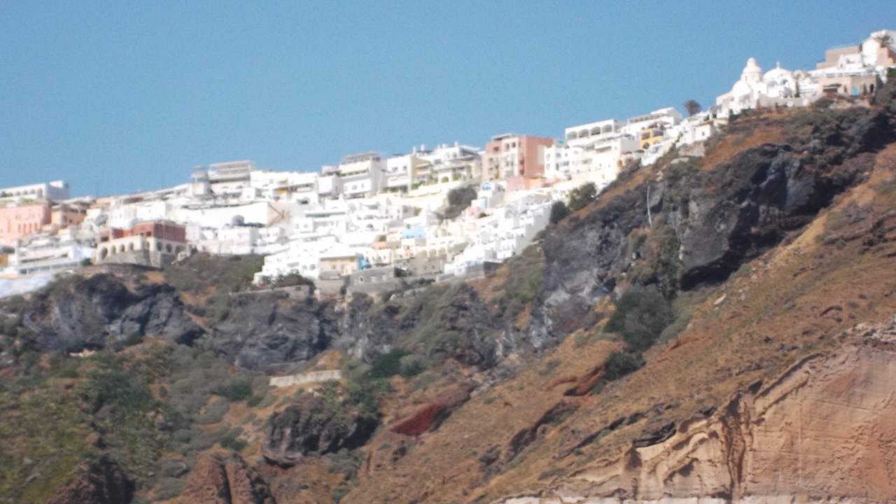エーゲ海クルーズで、この町の崖の下にテンダーボートで、着きました。