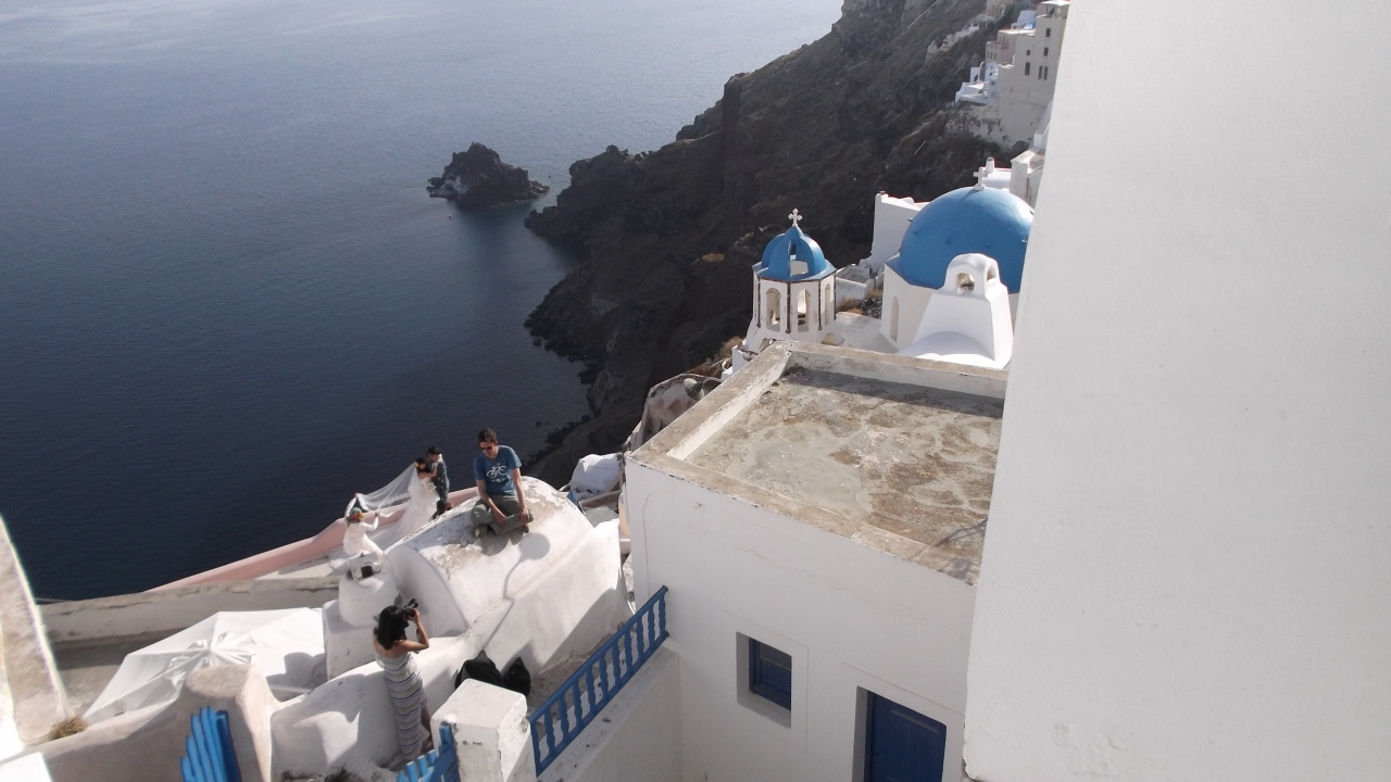 この町は、白い建物がかわいいです。 ギャラリーやジュエリーショップ、カフェ、レストラン等が並び、大聖堂の手前の崖に面したサンセットバーは素敵でした。