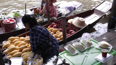 バンコクからツアーで、メークロン線路市場と水上マーケットに行きました。