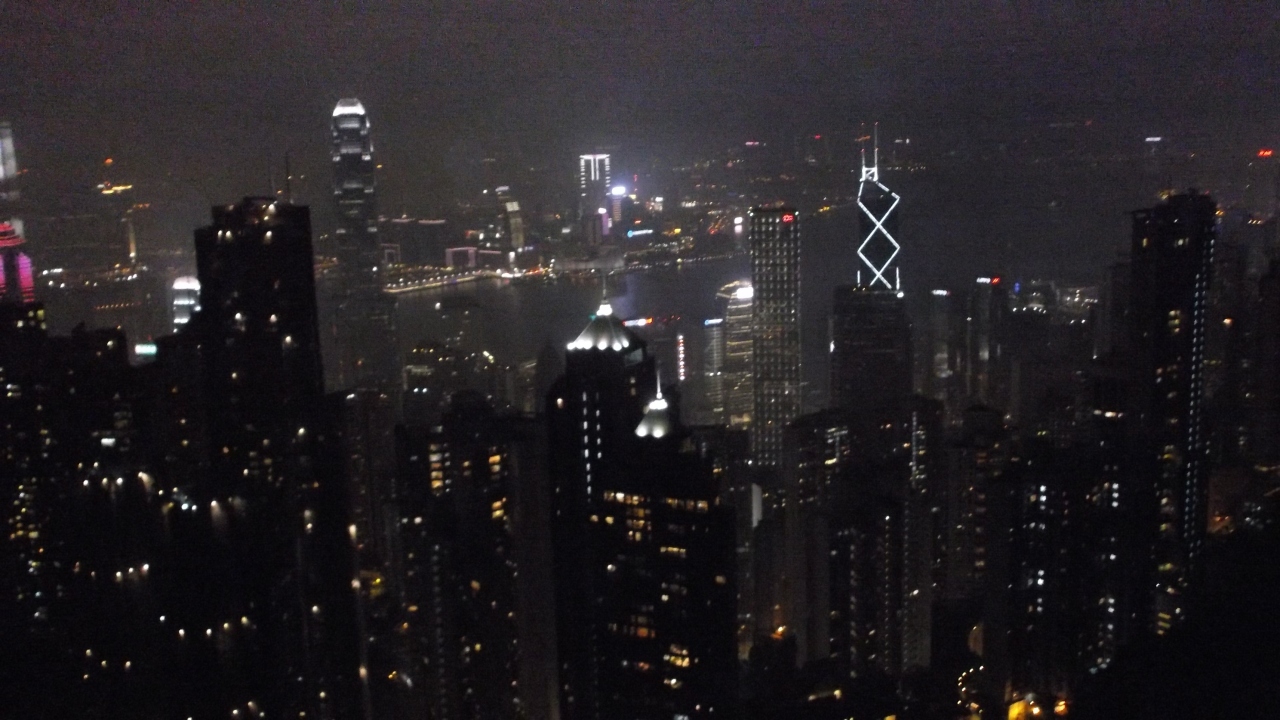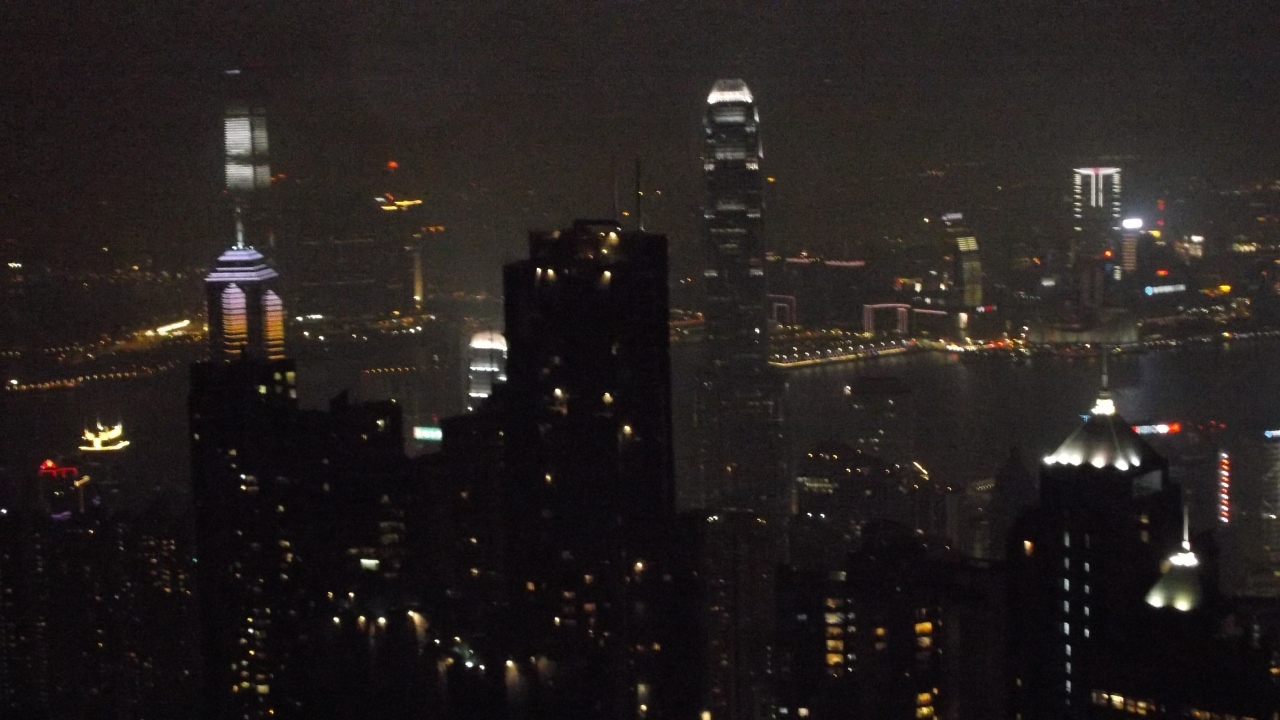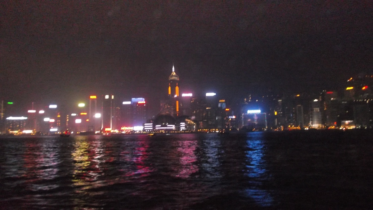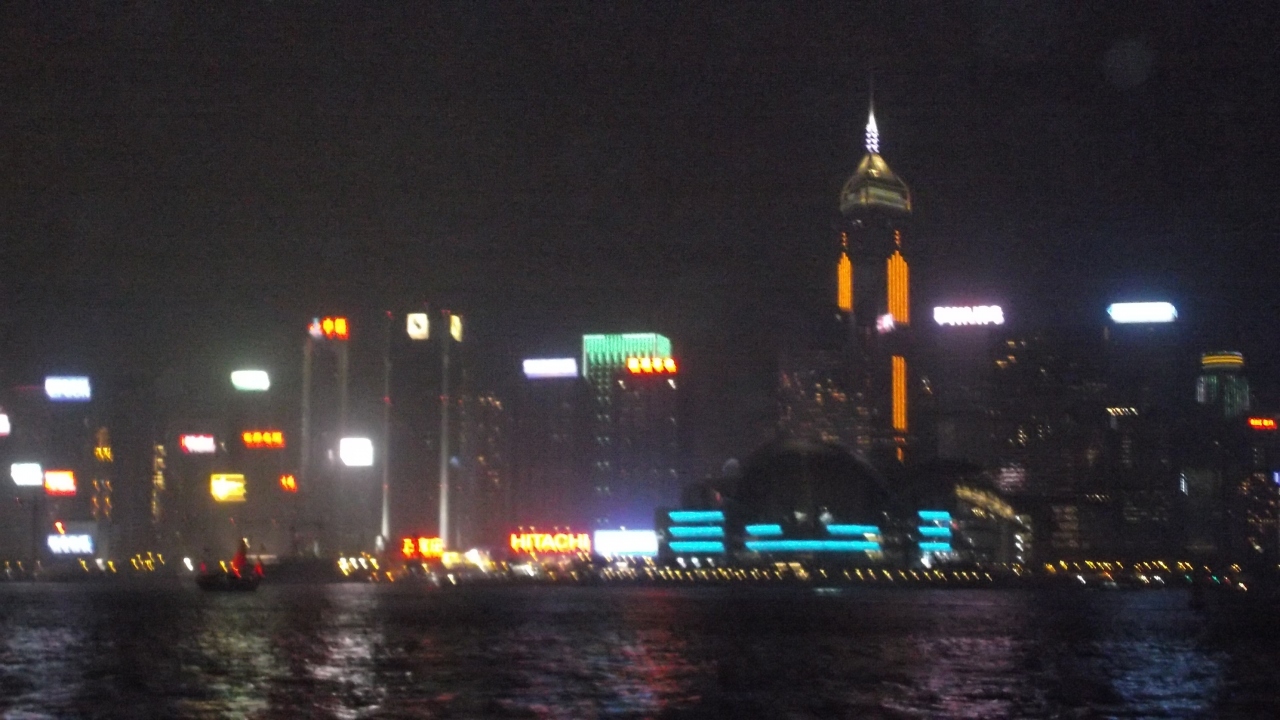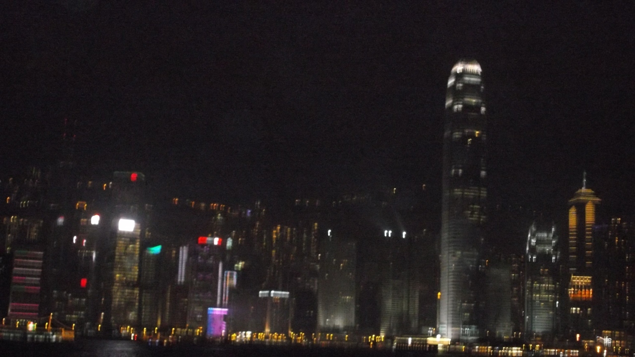 ビクトリア湾とそれを挟む香港島の23のビル、九龍側の22のビルから、音楽に合わせて、レーザーライトやライトアップのショーです。