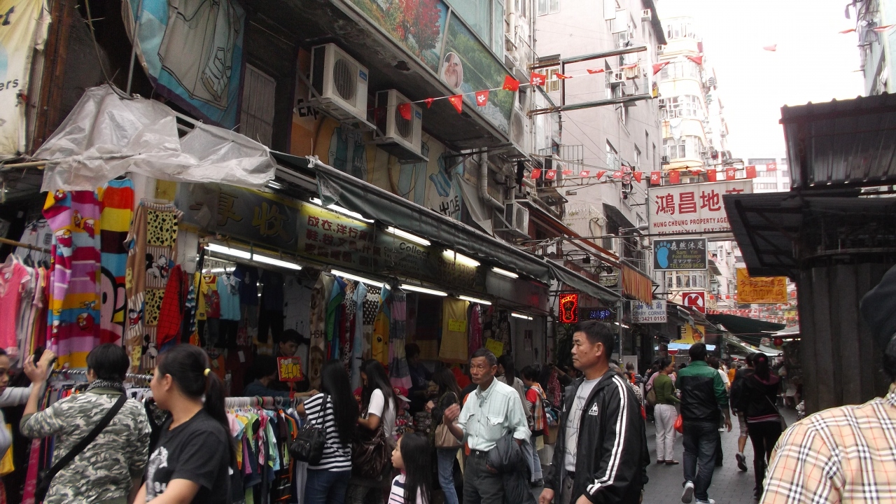 香港の下町です。 昔の雰囲気の残る場所、ナイトマーケットの賑わいも楽しいです。 場所としては、ネーザン・ロードをどんどん北上した所です。