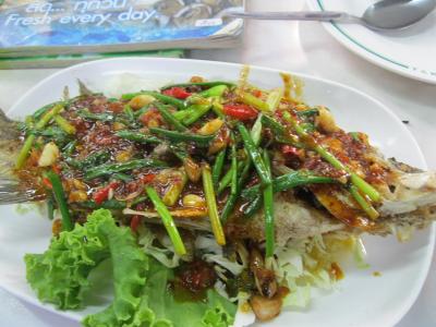 ヤワラートにあるシーフードレストランです。周辺には似たようなシーフード屋台もありますが、どこも結構混み合っていますので、美味しいんじゃないでしょうか。ここは日本人の利用も多いと思います。値段はビール大瓶が90B、チャーハンは60B~、クンパオが150B~、魚のから揚げが300B~位でしょうか。次回は別のシーフードレストランも使ってみて、食べ比べてみたいと思います。けど、ここも美味しいと思いますよ。
