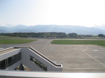 今回の飛行場は信州まつもと空港です。小さい飛行場でフジドリームエアラインズの便が、1日数便しか飛んでいません。松本市街からは車で30分程度でしょうか、駐車場は無料でした。施設は売店、お蕎麦屋さんなどが数店舗ある程度で、地方空港でも小さい部類かもしれません。私が訪れたときは最終便が出るところで、カウンター、売店、レストランは全て店じまいの支度をしていました。山々を背景にして飛び立つ飛行機が、いい風景だと思いました。