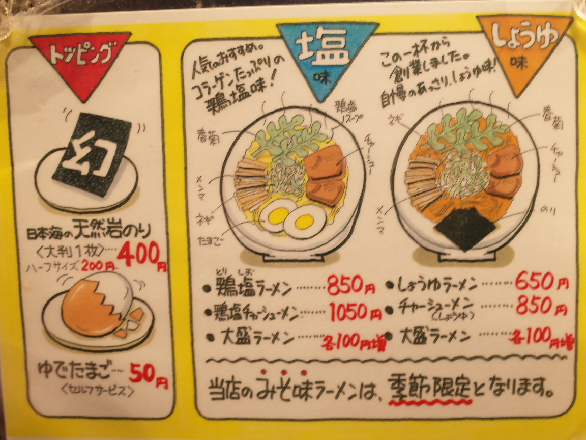 味はかなり塩辛くて飲んだ後のしめのラーメンという所でしょうか。