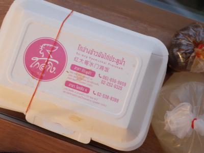 店内飲食ではカオマンガイ(40B)スープ(20B)おかわりごはん(10B)