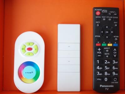 電動カーテン、必要のない天井のライトコントロールもあります。