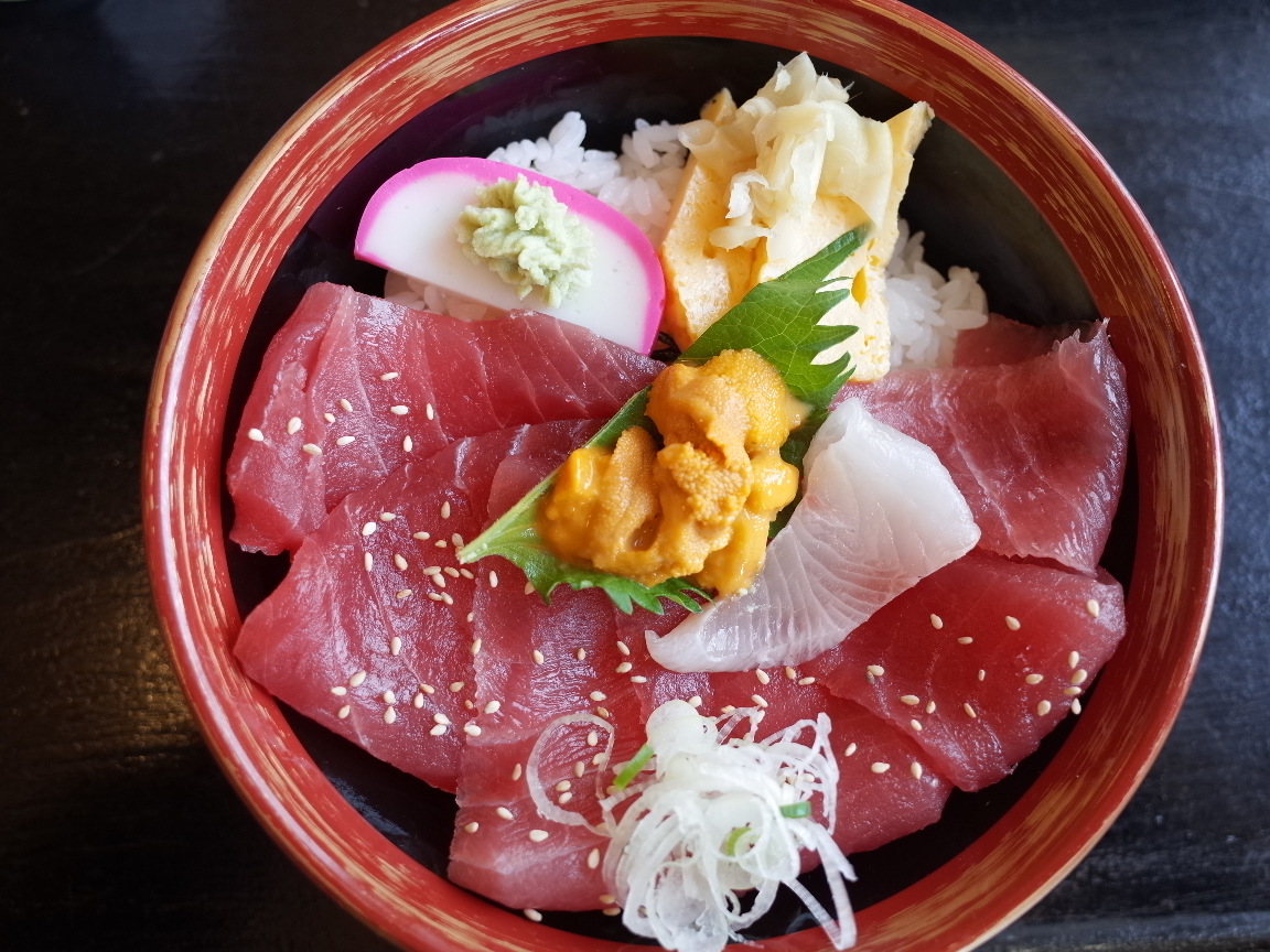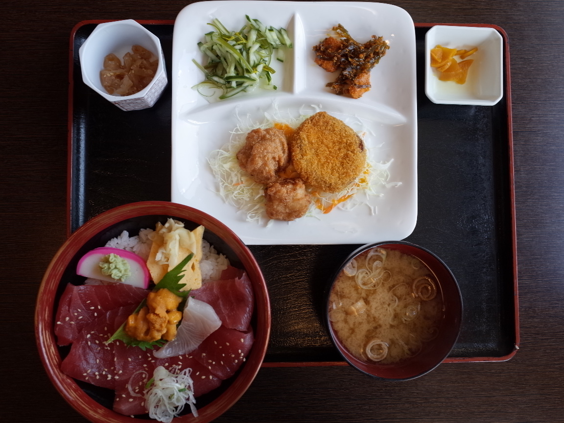 ランチ利用。日替りランチ(900)この日はマグロ生うに丼。