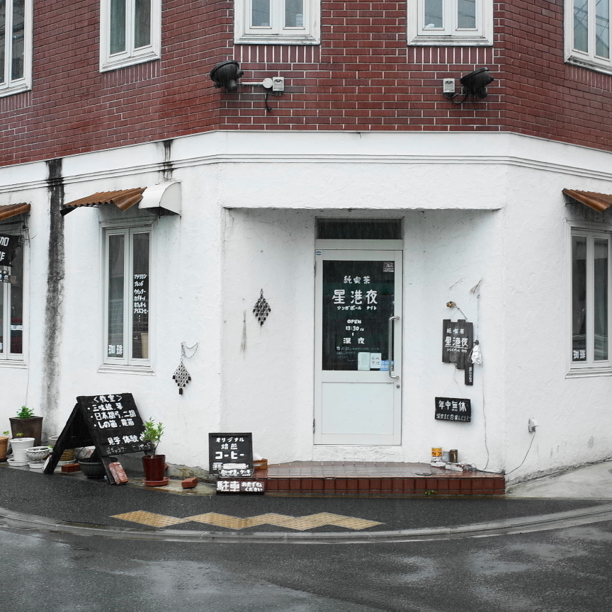 かなり細くて急な階段をのぼると小さなお店があります。