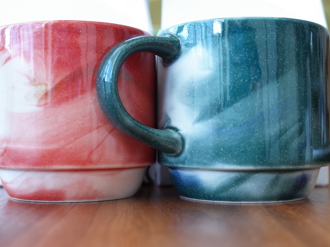バスを大社前で降りると目の前にあります。入口を入って右手にマグありました。出雲限定のマグ(1600税)は3色ありますが、青と赤にしました。1つ1つ色合いは違うそうです。軽いし持ちやすいしとても使い勝手のいいマグです。