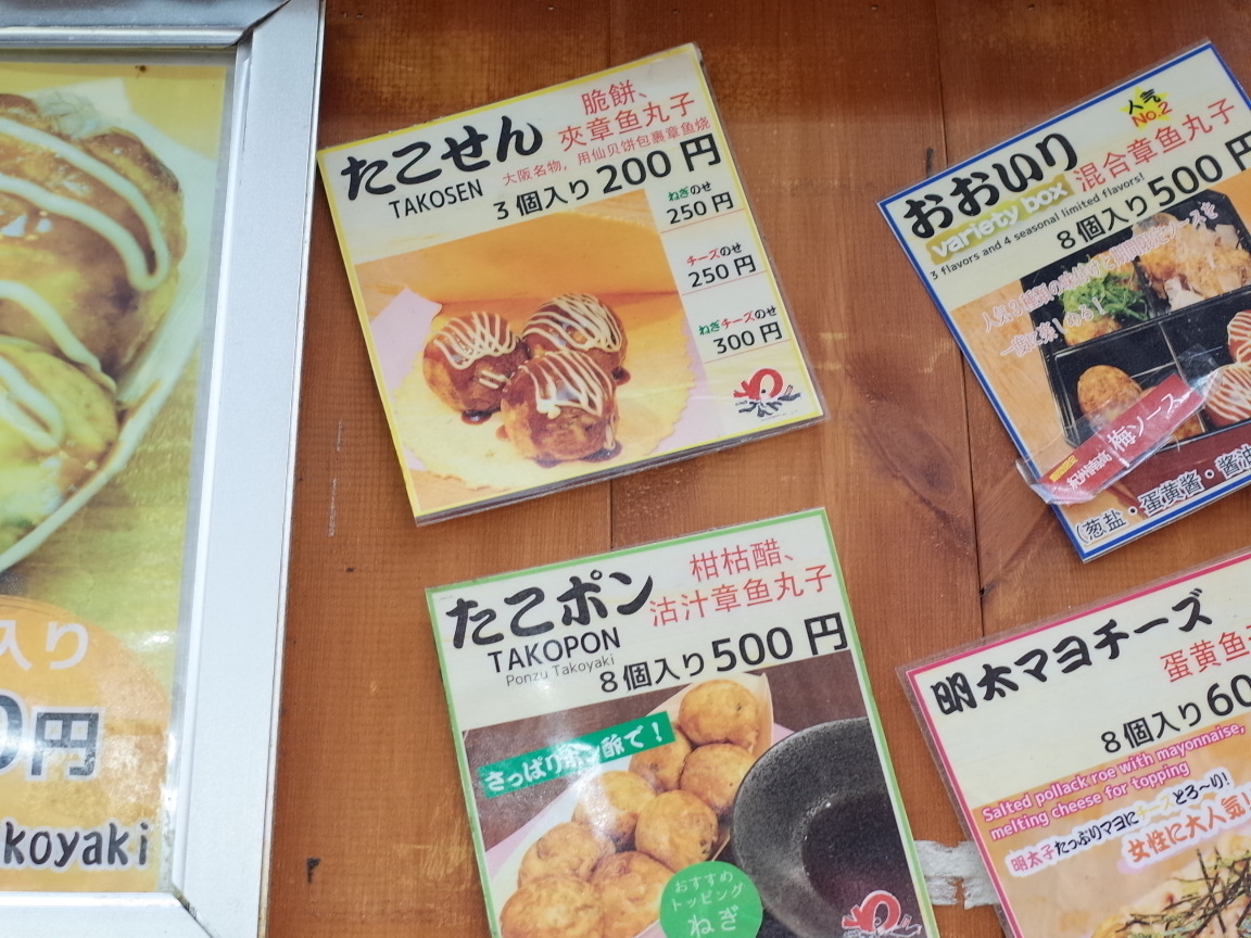 たこせんはどこも、たこ焼き3個入り200円でした。