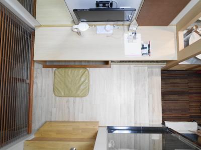 部屋は高床式で1F部は実質中型のスーツケースを広げるくらいのスペースしかない。