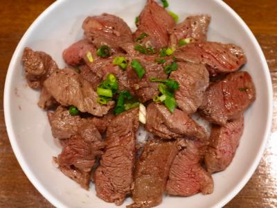 さて、ステーキ丼ですが、やわらかい肉たっぷり。