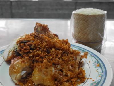 チキンのハーフとソムタムとカオニャムお願いしました。