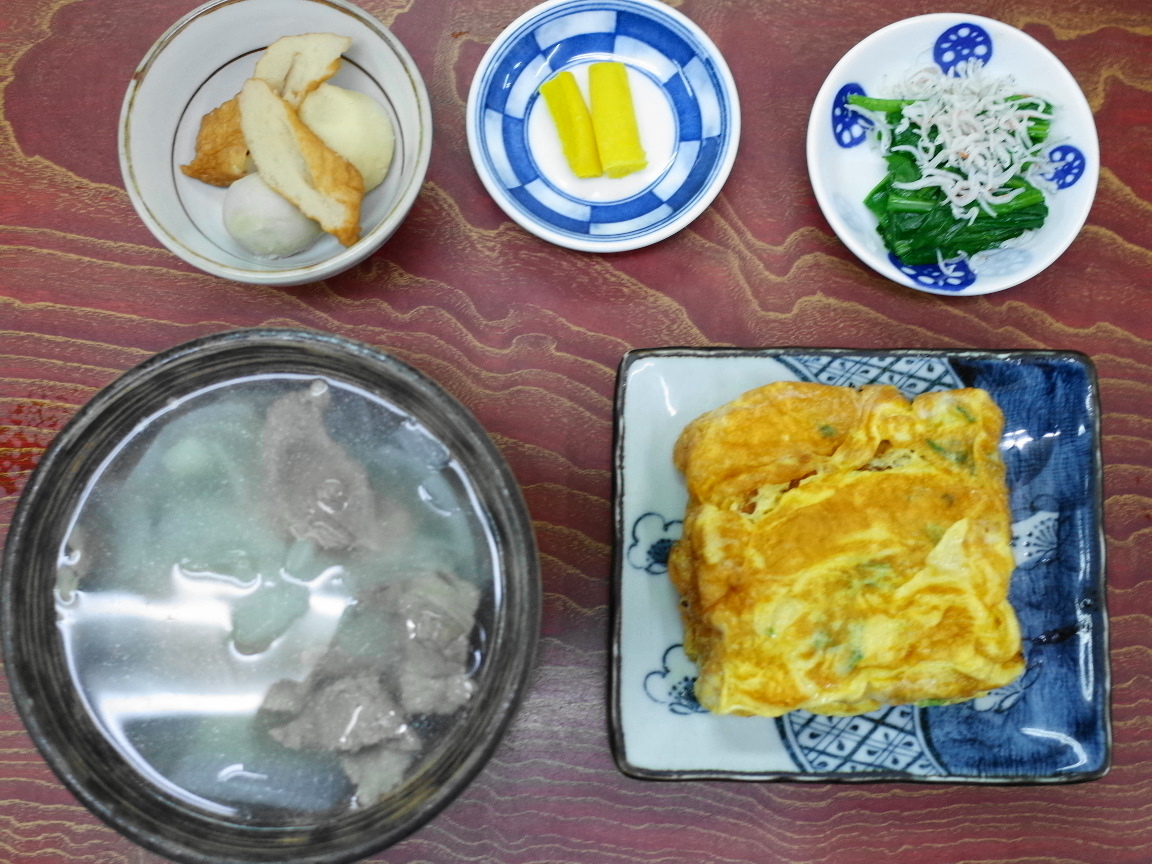 シチュー定食は、特製シチューと卵焼き。それに小鉢2品選べます。