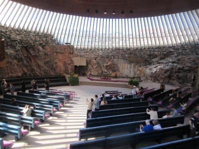 花崗岩をくりぬいて造った教会。大きさに驚く。大きいのでコンサート会場としても使われているそうである。天井はガラスがはめ込まれていて教会の中は明るい。フィンランド福音ルター派教会で毎年50万人の観光客が訪れる。珍しいからだろう。訪れた時も多くの観光客で賑わっていた。二階がある。