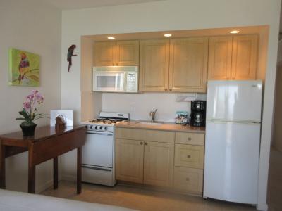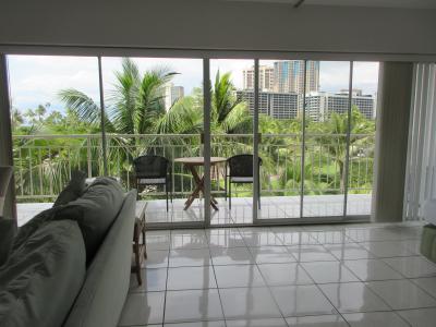 1ベッドルームオーシャンビューのお部屋を予約して、現地に行ってみると5Fの部屋のどこに海が見えるのかがよくわからない程、ラナイの前の樹木がうっそうと生えていて驚いた。フロントに本当にオーシャンビューなのかを訪ねてみたが、答えは「オーシャンビューとオーナーが言っている」とのことで全く定義が分からない。コンドミニアムから3,4分離れた所にフロントがあり、電話は「後ほどかけ直します」という応答が吹き込まれていて通じない。フロントまで歩いて行って用件を伝えた。日本語で予約ができる点は便利だ。