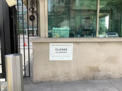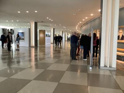 ガイドブックや現地ガイド等から様々な異なった情報があり、実際に行ってみないと入れるかどうかが分からない状態で訪問した。しかし、建物の中に入ることが出来た。47アベニューにある門から入場できる。まず門の道路を隔てた反対側のオフィスに行き、パスポートを提示し、写真を撮ってもらい入場証を発行してもらう。その後、荷物検査を受けて入場できた。ネットでは本部主催のツアーに参加しないと入場できないようになっているが、パスポートがあればOK。地下にお土産屋さんとカフェがある。多くの子どもたちも見学に来ていて賑やかだった。平日のみ入場可能。