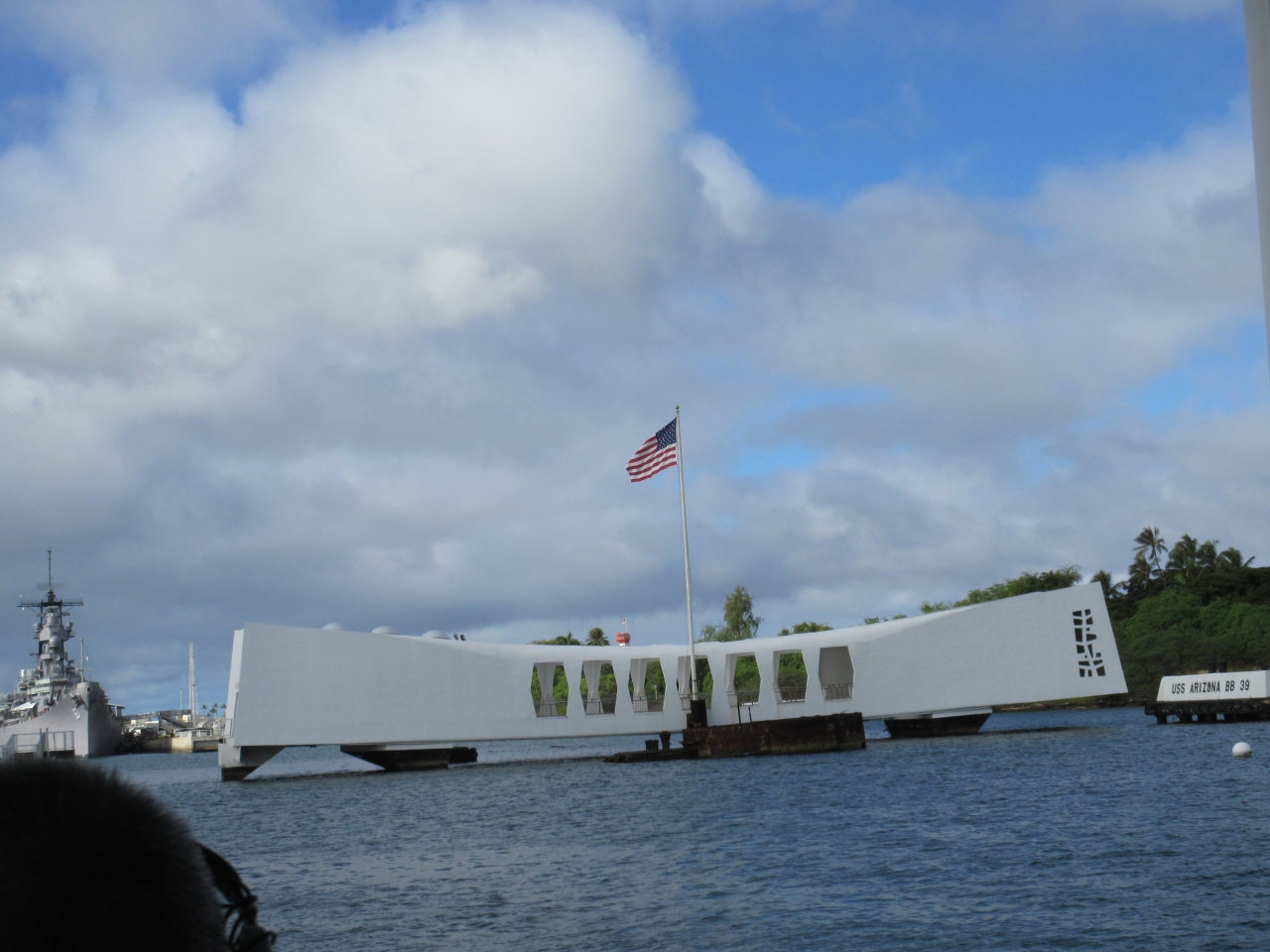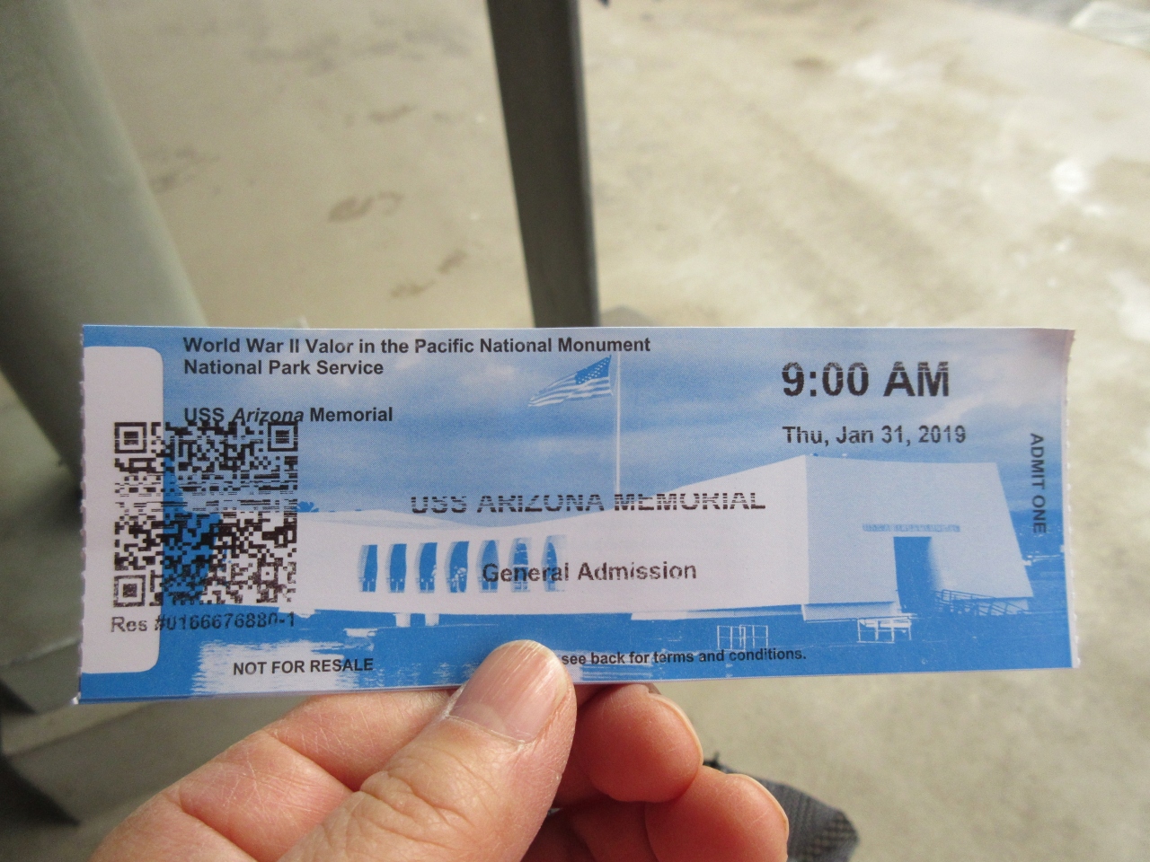 アリゾナ記念館は建物に亀裂が見つかり修理中ということで入館できず、ボートで周りを回るだけである。他に変わった点はなく整理券が配られ、それをゲットできないとアリゾナ号に向かう船には乗船できない。8時半に着いて9時の整理券を手に入れることができた。記念館に入れないためか昨年より空いていた。