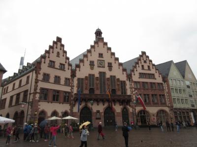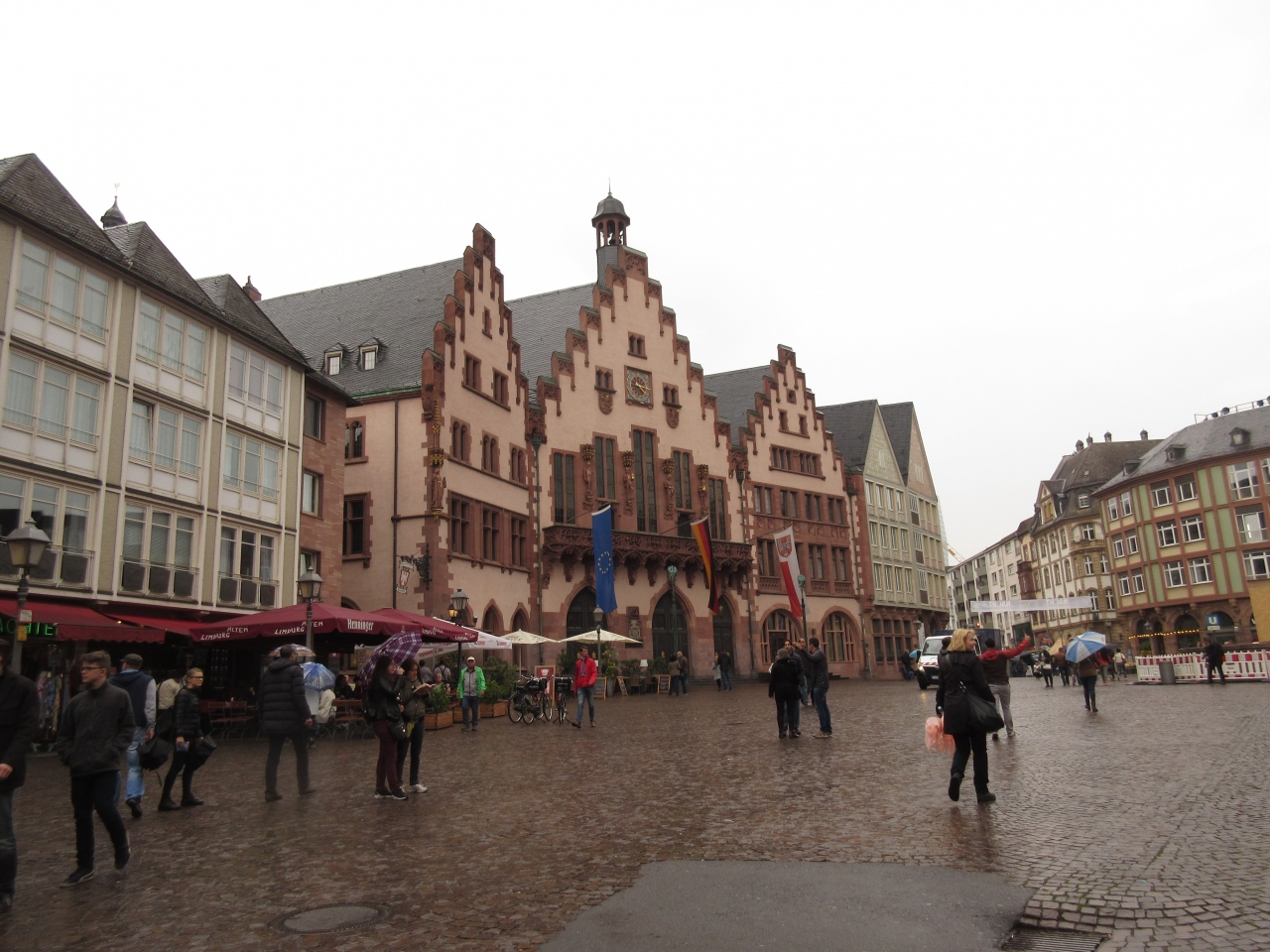 レーマー広場の周りにある建物の中でひときわ目立つ三連の三角屋根の建物。ベージュの階段状の切妻屋根が美しい。都市貴族の館を15世紀に市が買い取って市庁舎にしたという歴史がある。最初から市庁舎用に建てたのではないので公の建物には見えない。