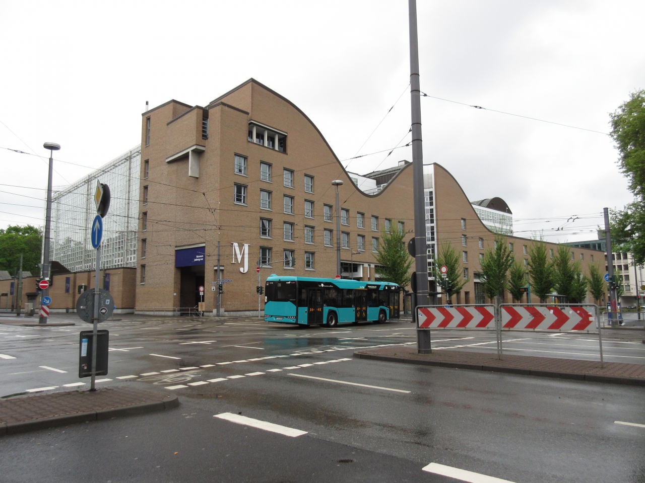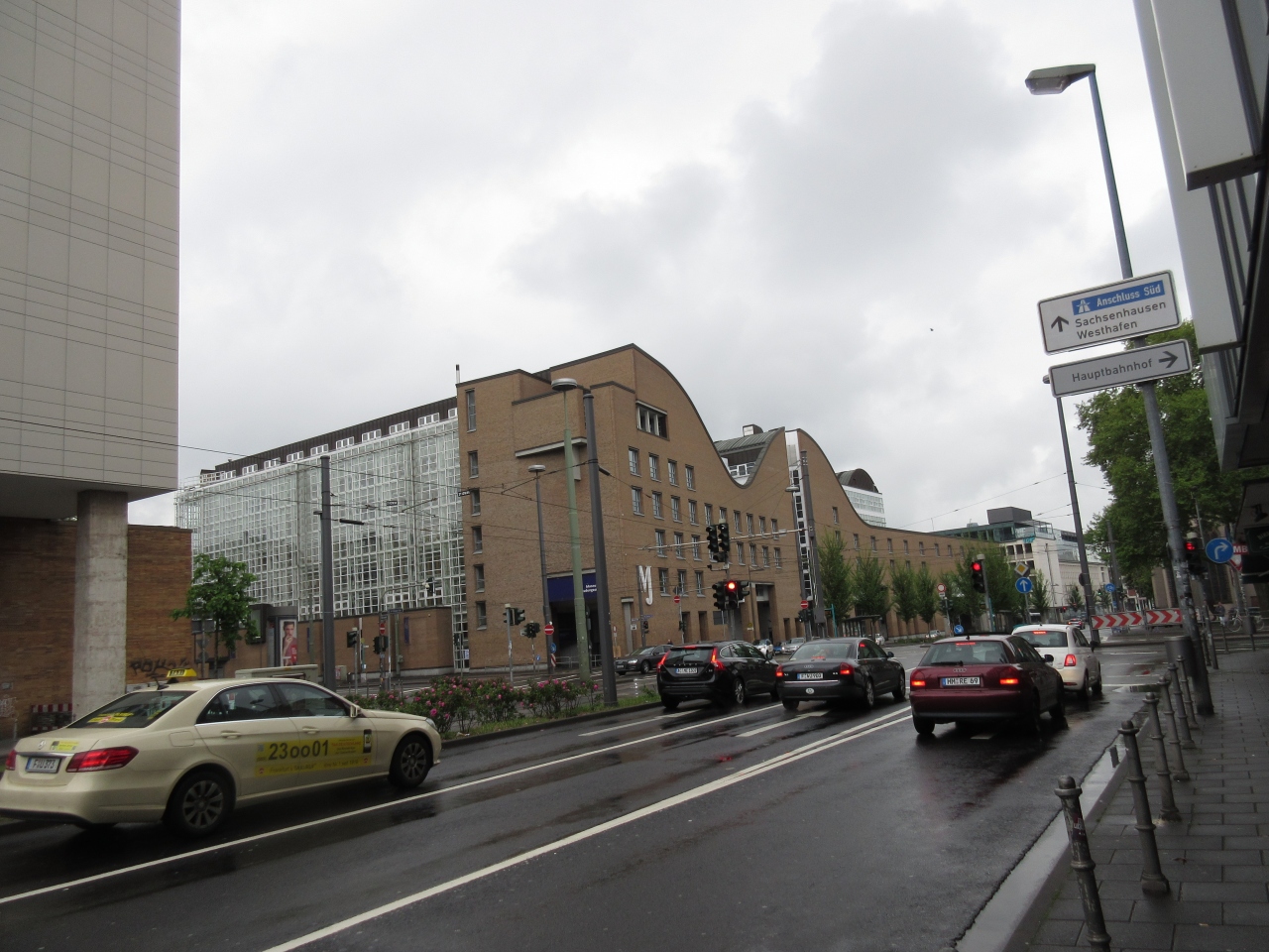UバーンのKonstablerwache駅から歩いて数分の所にある。屋根の形が波打ち、ベージュの棟が重なった大きな建物で明らかに周囲の建物とは違う。ユダヤ人の迫害の歴史を知る先入観もあるかもしれないが重苦しい感じがする建物で周囲とは乖離していると思う。