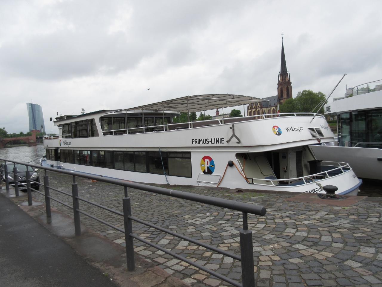 フランクフルトの町を横切る大きな川で流れは緩やか。水位があまり変わらないのか堤防らしいものはない川岸もあった。歴史博物館の近くの船着き場からクルーズをすることができる。郊外まで行き、戻って来る行程。景色が変わるので楽に観光ができる。